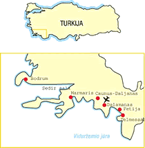 Rodosas sala. Pēc vienas stundas brauciena no Marmarisas ostas pie horizonta parādās Rodosa - trešā lielākā (1400 km2) Grieķijas sala. To apskalo Egejas un Vidusjūras ūdeņi, šeit krustojas austrumu un rietumu ceļi. Uz šīs salas brīnišķīgi sadzīvo dažādu laiku un kultūru mantojums: antīko laiku, viduslaiku un mūsdienu.